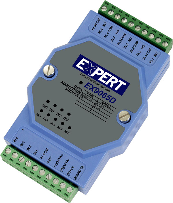 EX9065BD-M – 4 channel digital input, 5 channel DC-SSR relay output module with Modbus RTU and LED